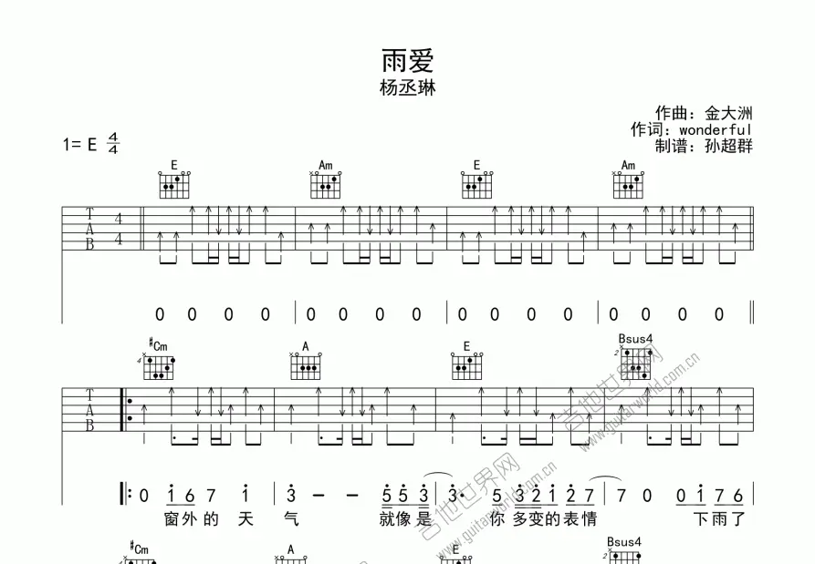 雨爱吉他新手指弹谱