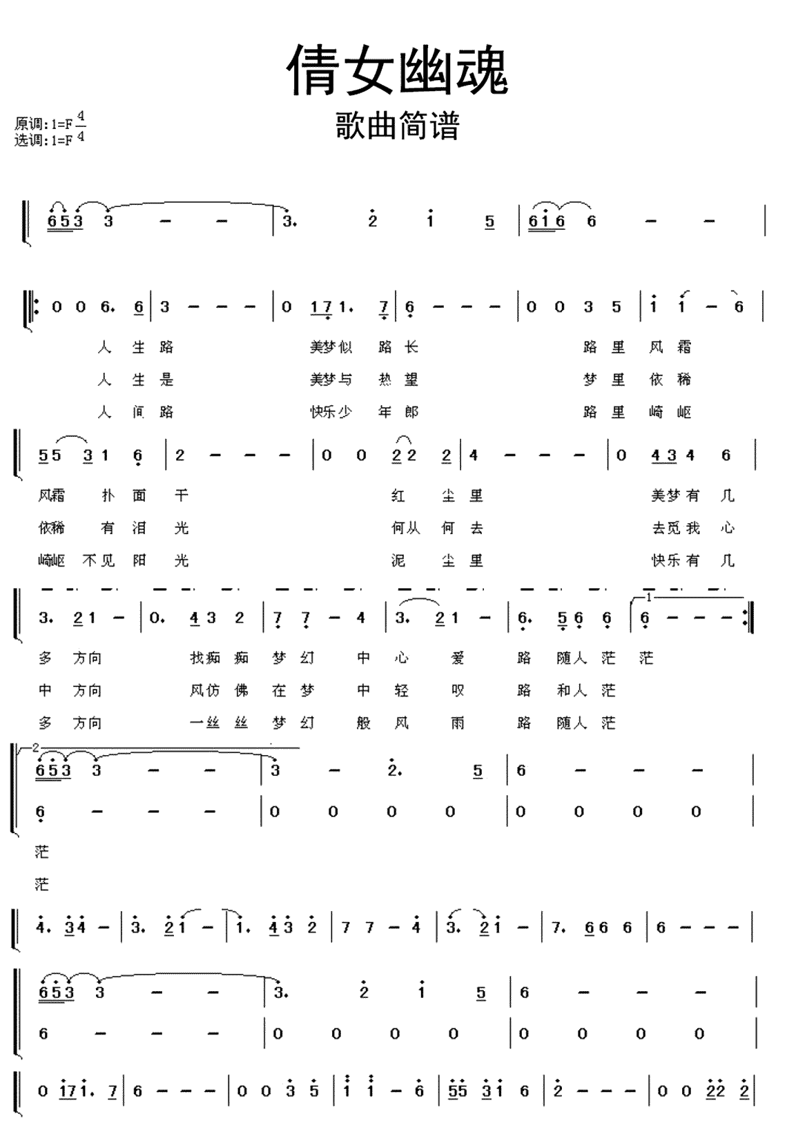 倩女幽魂(影视金曲100首) 歌谱简谱网