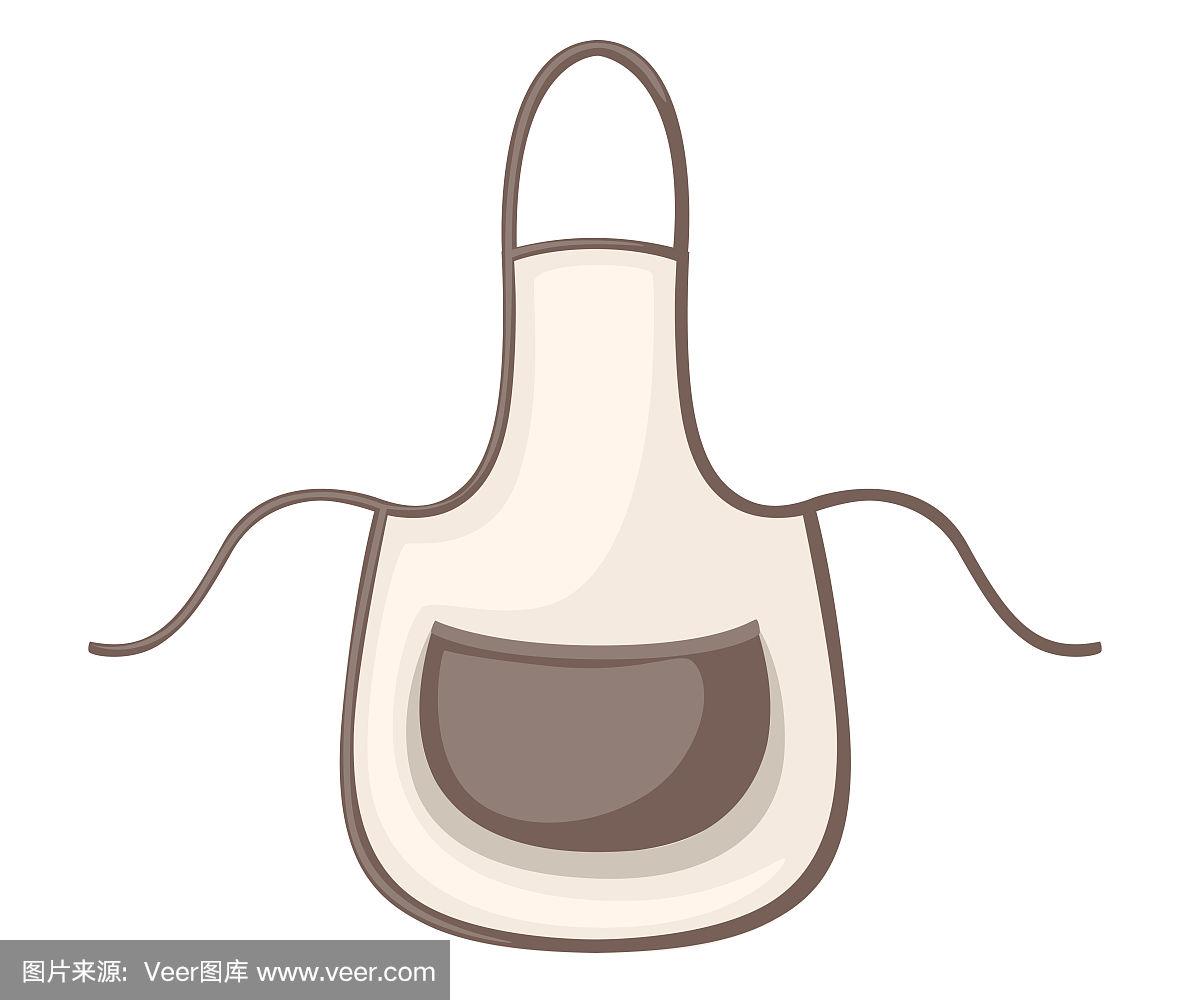 白色和棕色的厨房围裙.卡通平面风格插图孤立的白色背景