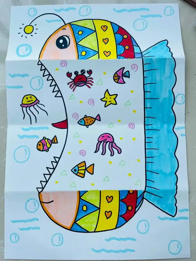 中大班创意美术简笔画《灯笼鱼》可以给灯笼鱼画好吃的食物9517