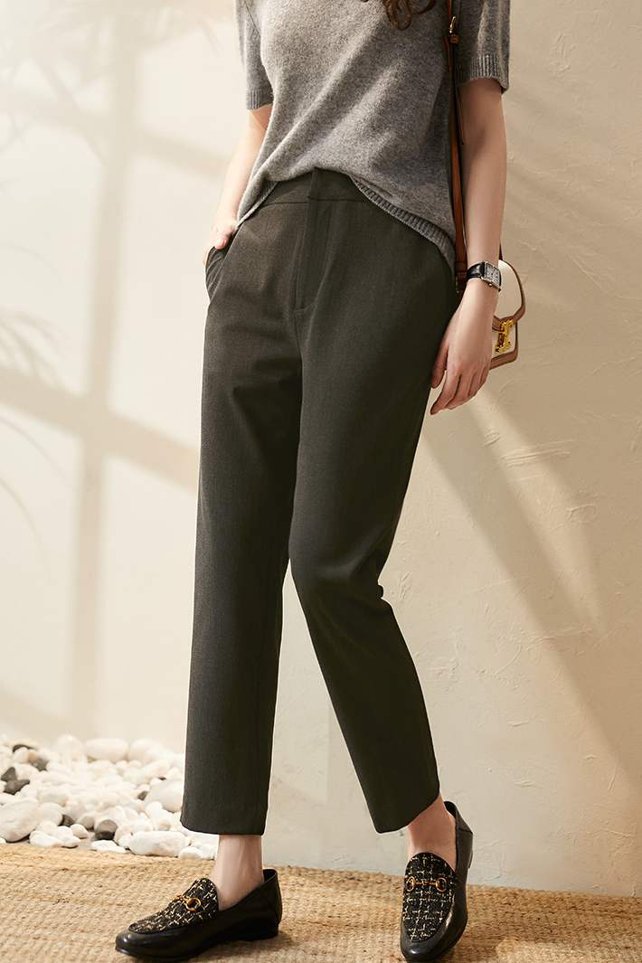 5折价1099元还可叠券唐狮春夏新款女休闲裤后腰松紧修身九分西裤女
