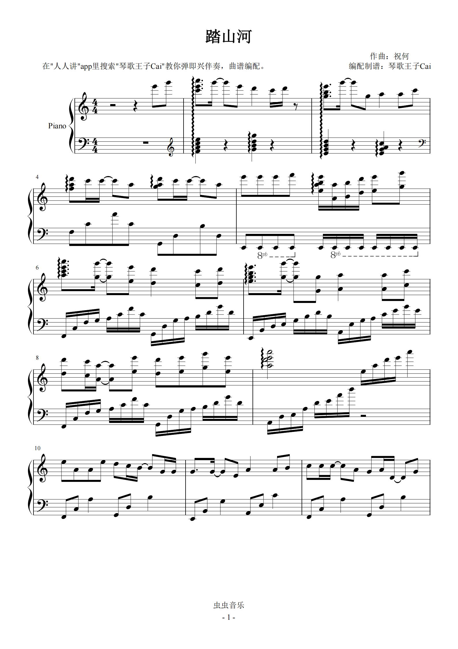 踏山河钢琴谱_c调弹唱谱_祝何_钢琴独奏视频_原版钢琴谱_虫虫钢琴