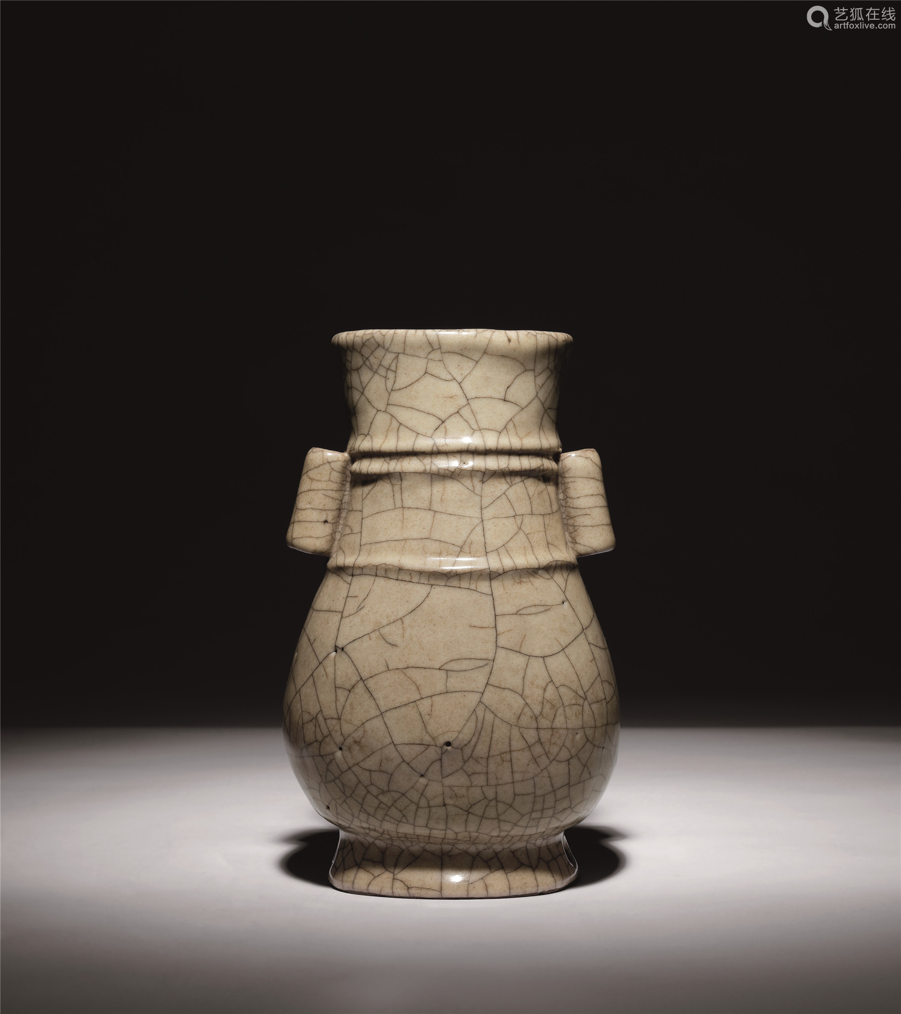 宋哥窑米黄釉八棱贯耳瓶tqzh