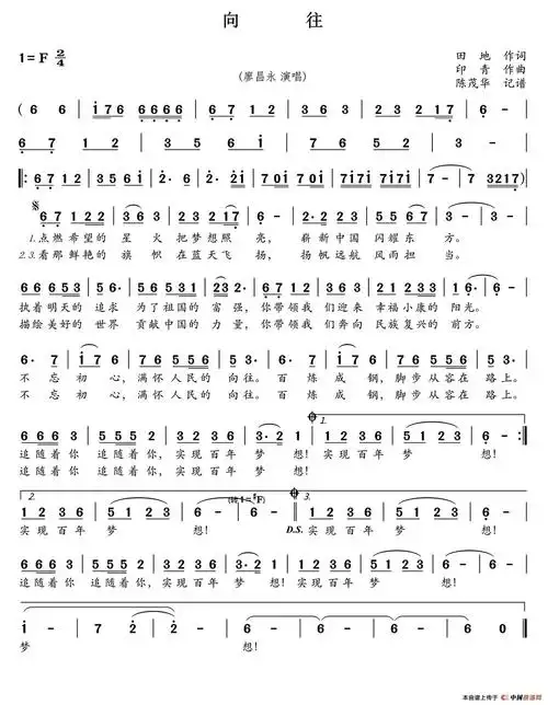 向往(文良地词 戴红,文良地曲) 歌谱简谱网