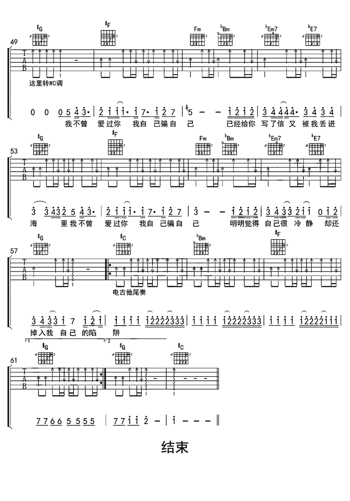陷阱吉他谱_王北车_c调指法_吉他弹唱教学视频-明明简谱网
