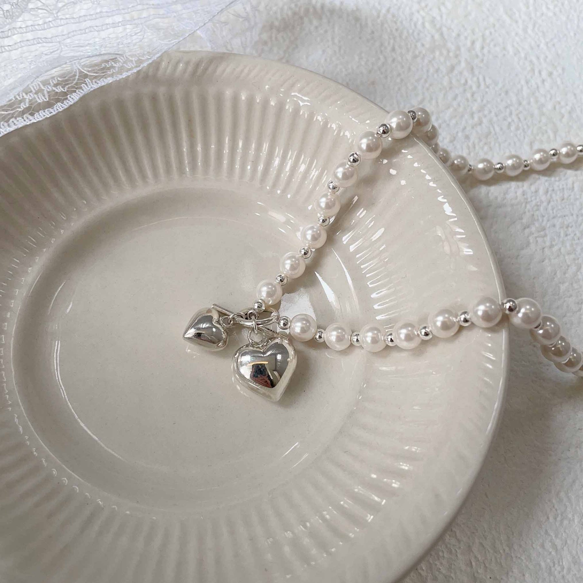 银瑞泰s925纯银爱心珍珠项链女韩国2024新款女夏天小众轻奢锁骨链