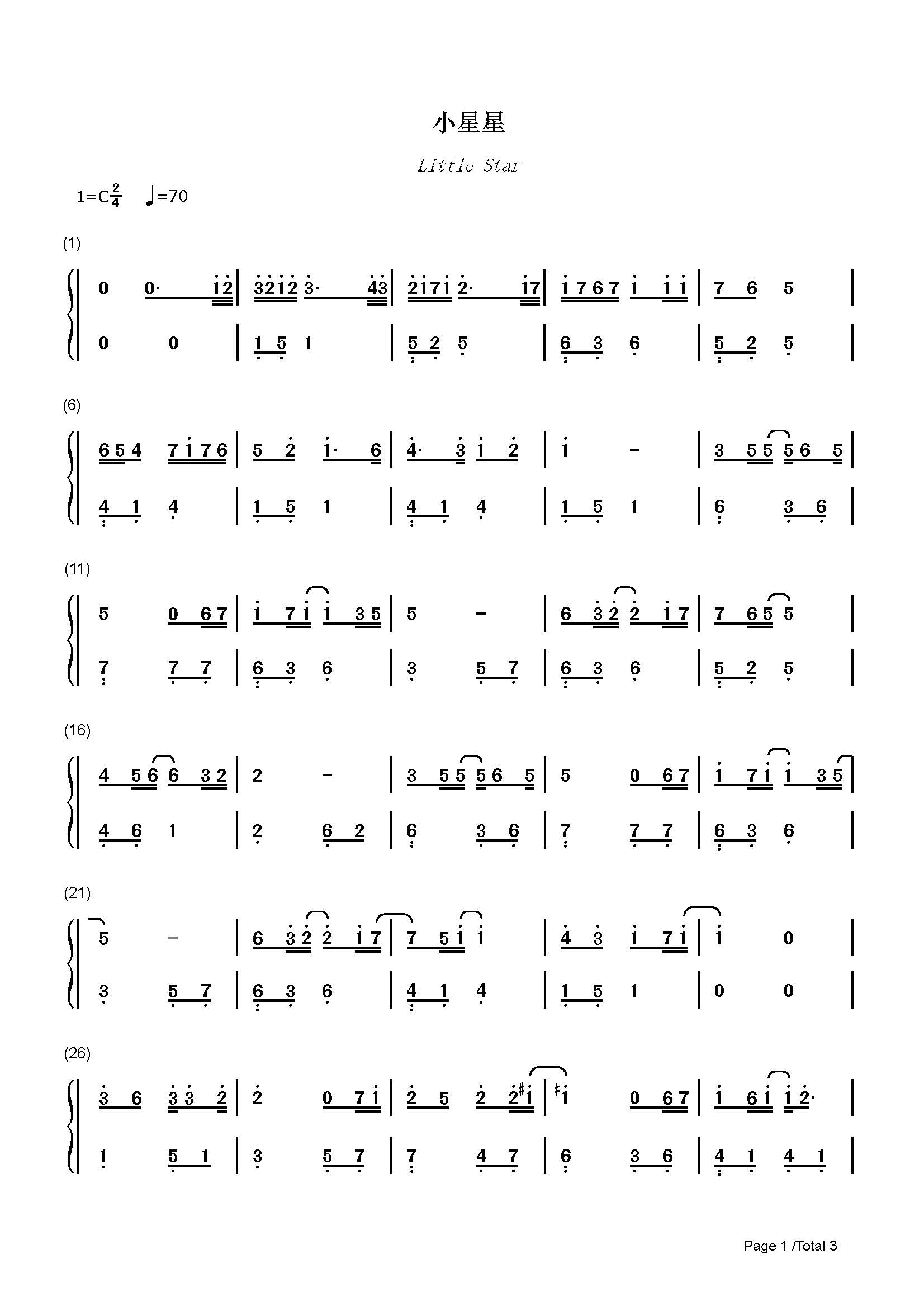 小星星钢琴谱简谱汪苏泷c调流行钢琴简谱