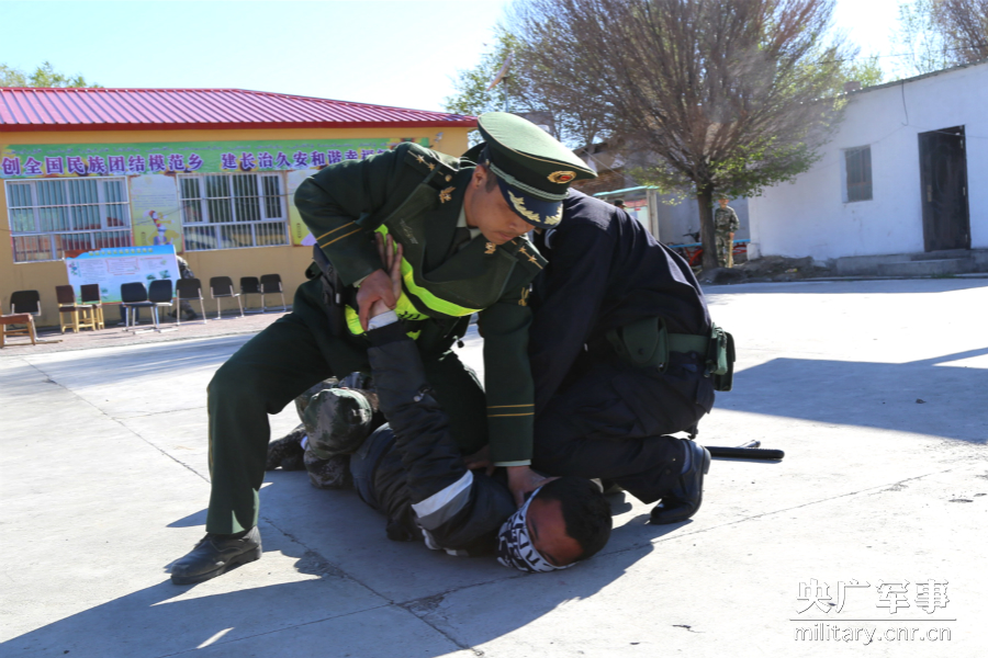 新疆反恐演习:武警抓捕持燃烧瓶袭警暴徒