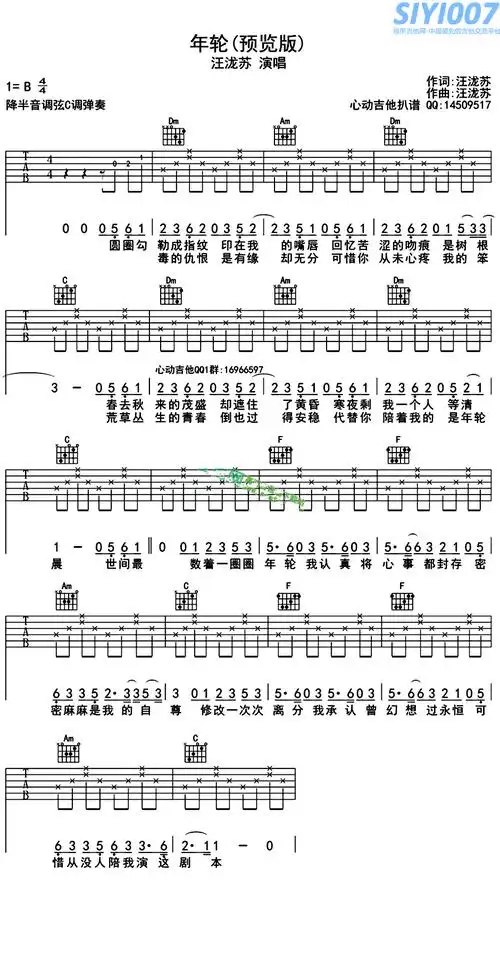 年轮吉他谱(图片谱,弹唱,简单版)_汪苏泷(silence.w)
