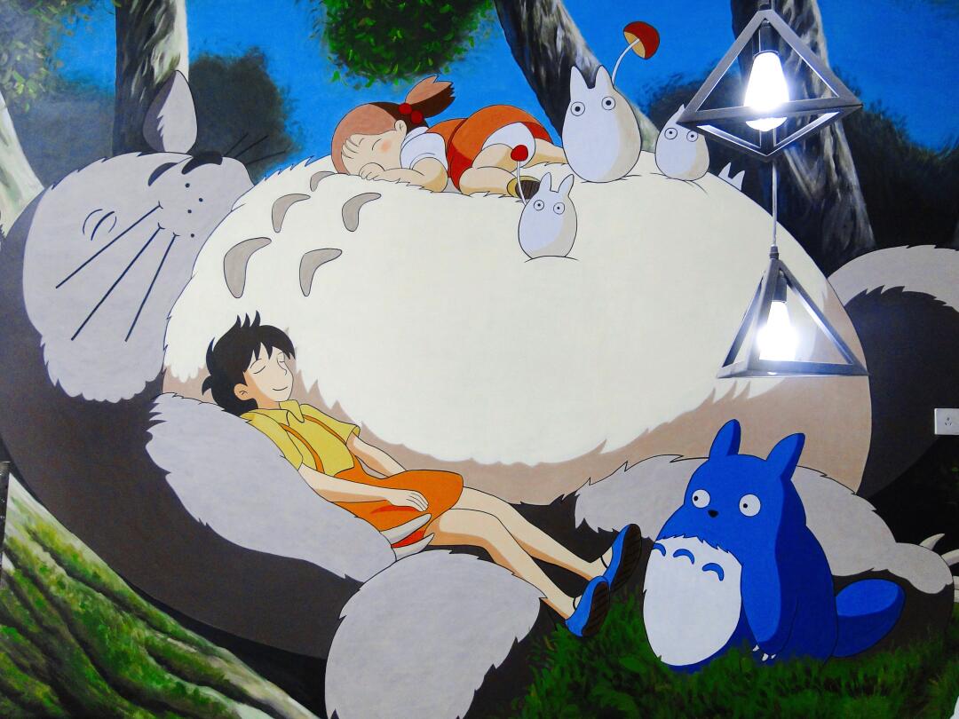 大型壁画3d立体龙猫动漫卡通墙纸儿童房卧室床头电视背景墙壁纸