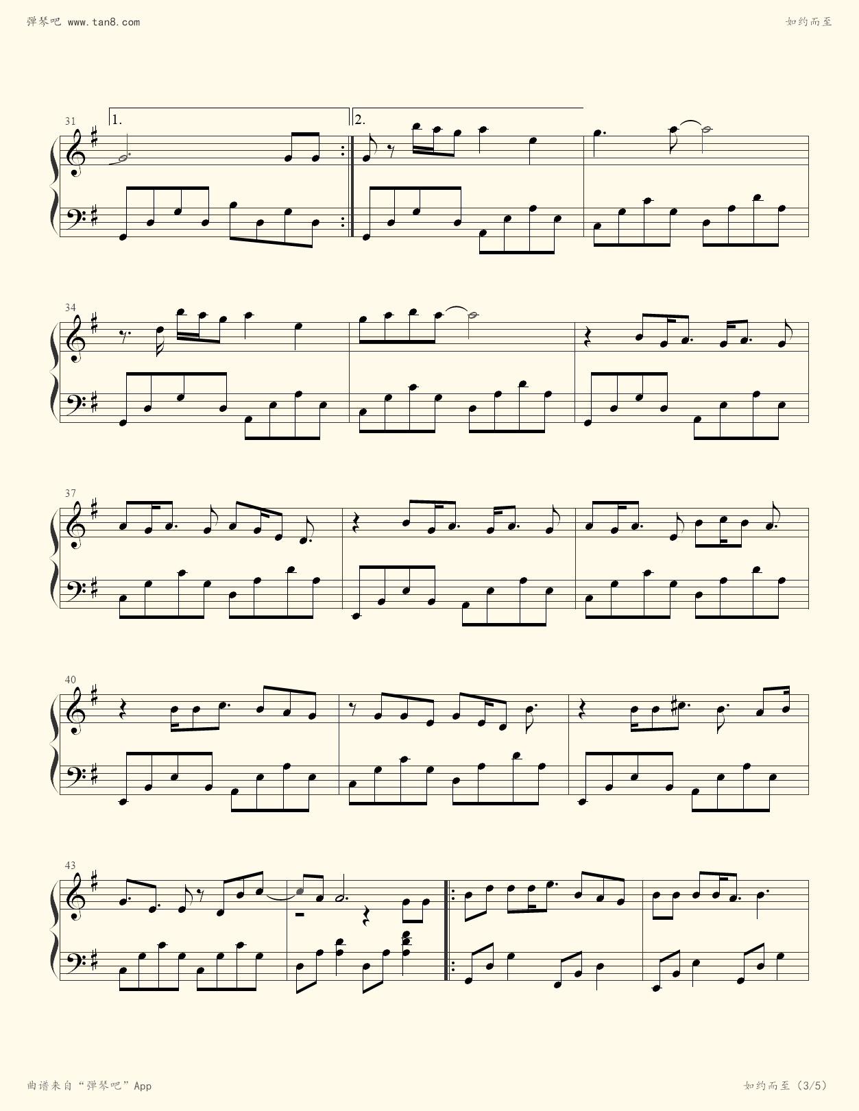 如约而至-c调简单版-钢琴谱文件(五线谱,双手简谱,数字谱,midi,pdf)