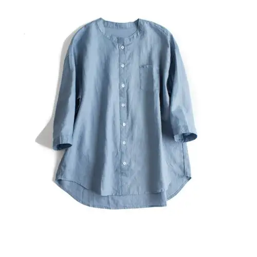 无印良品muji日本本日外贸出口女装亚麻中长衬衫棉麻衬衫