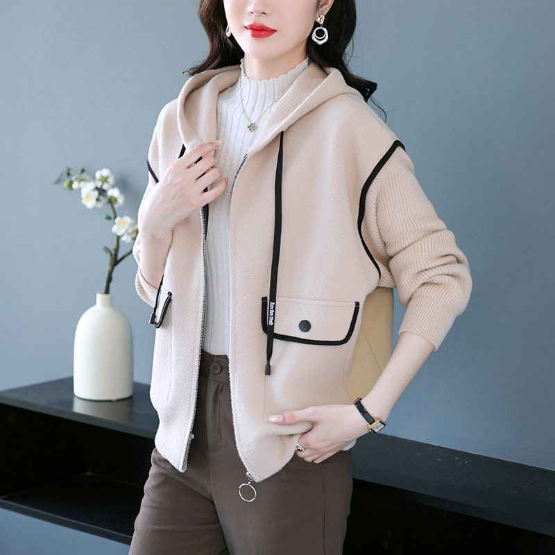 短款女外套春季韩版时尚连帽毛呢外套女士短装呢子外套春秋装上衣