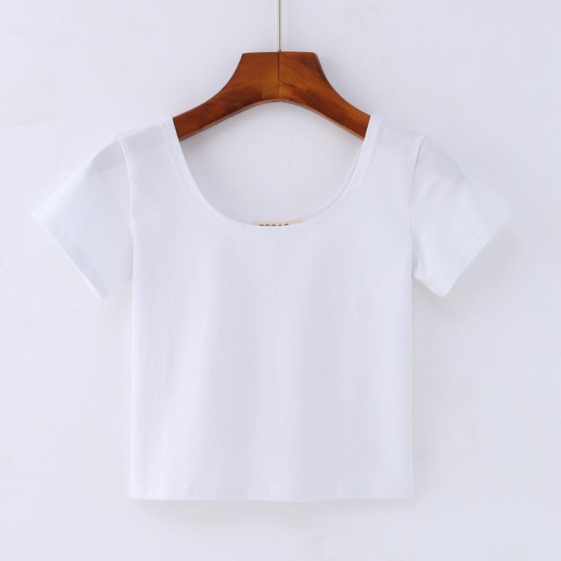 短袖露脐u领高腰上衣女夏紧身短装广场舞跳操纯色衫白色双u领l95105斤
