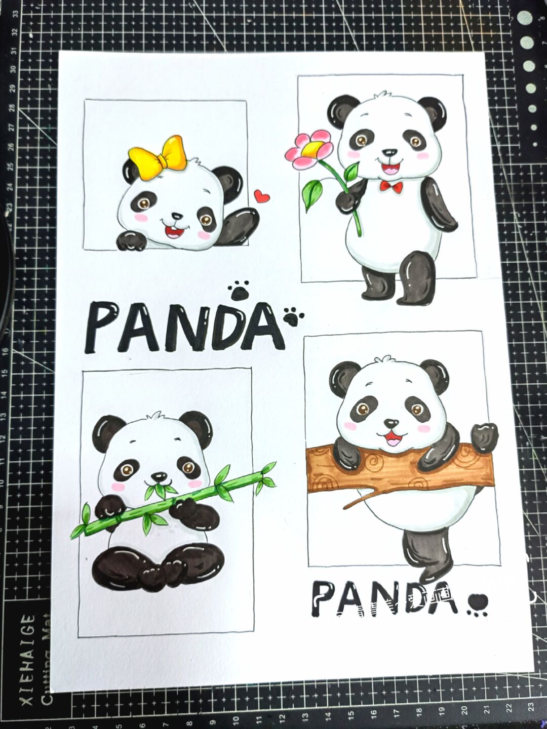 可爱的大熊猫手绘#画画# #马克笔手绘# #大熊猫# #保护动物主题画