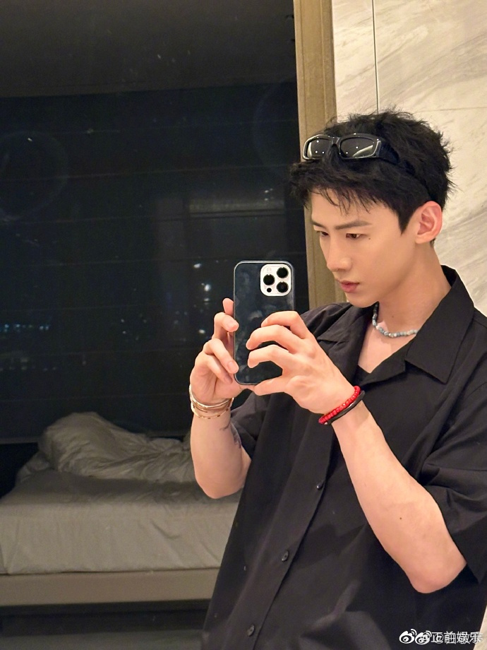 白敬亭对镜自拍四宫格##白敬亭全黑ootd