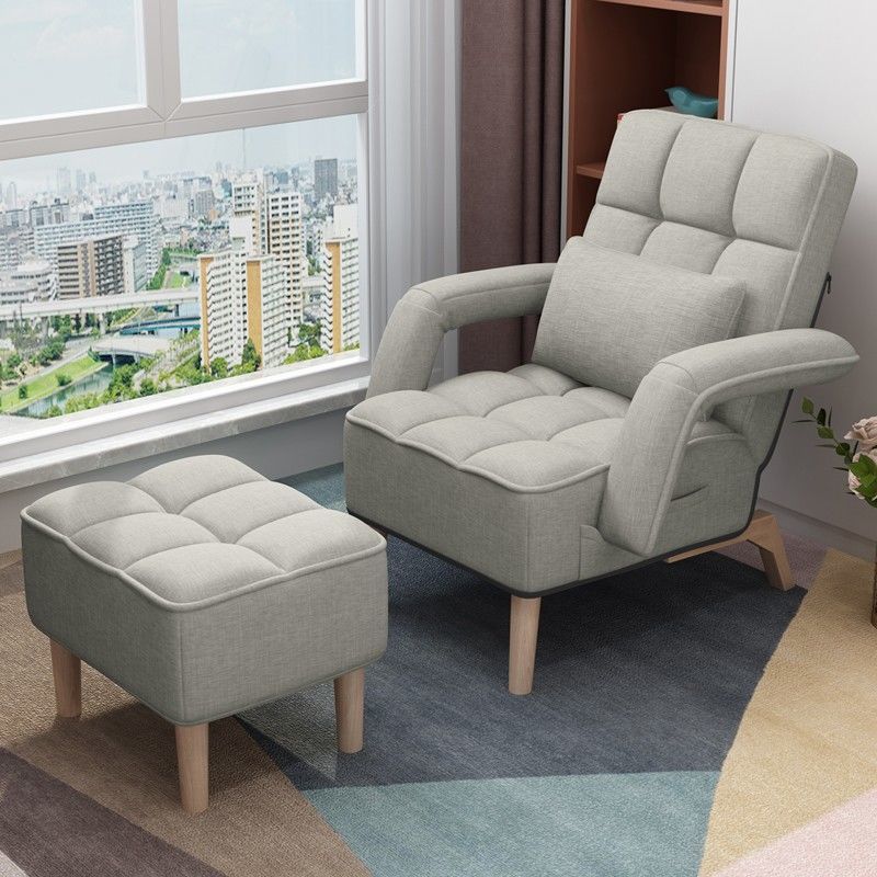阳台单人小户型沙发可爱网红躺卧靠背椅子 卡其色靠背5挡调节款 脚蹬