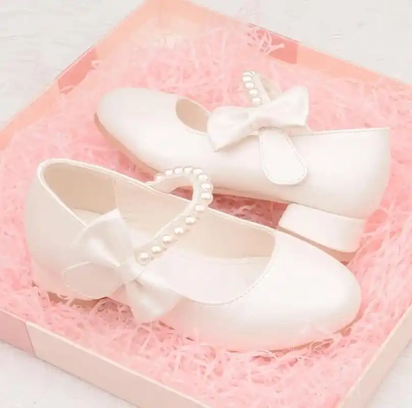 女童白色高跟鞋公主风春秋季皮鞋中大童鞋儿童配晚礼服鞋珍珠单鞋