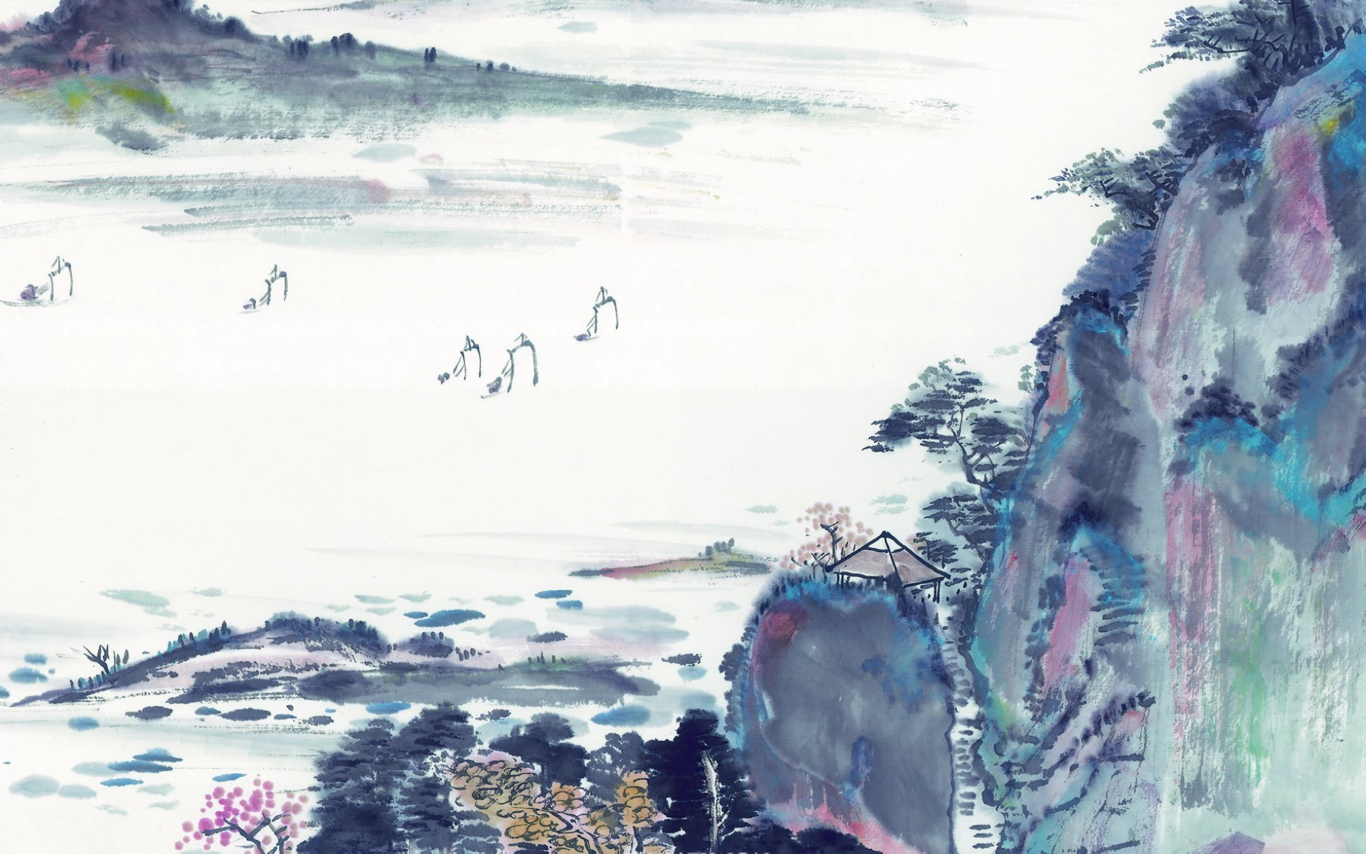 清新淡雅的山水水墨画电脑桌面壁纸高清
