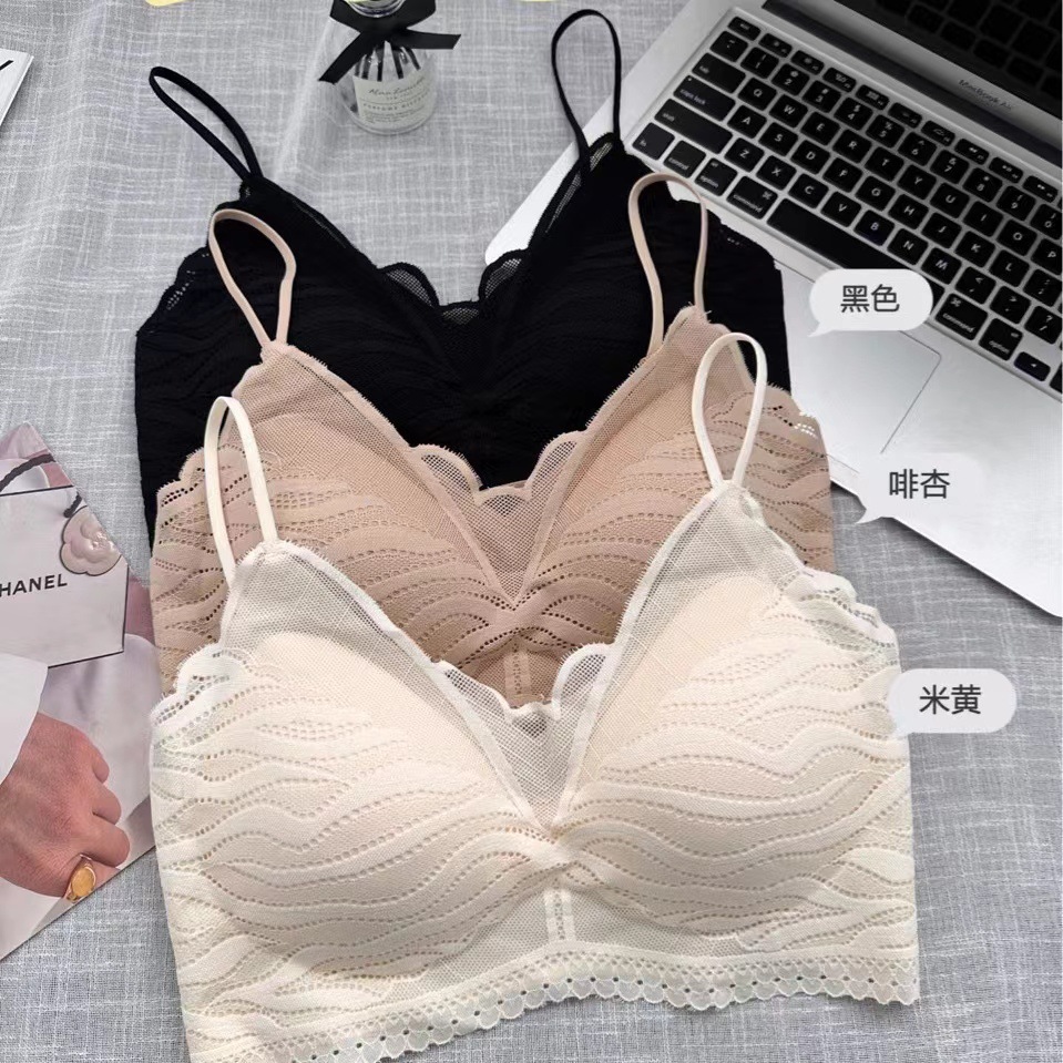 法式蕾丝美背吊带裹胸镂空交叉带女士文胸无钢圈固定杯内衣871
