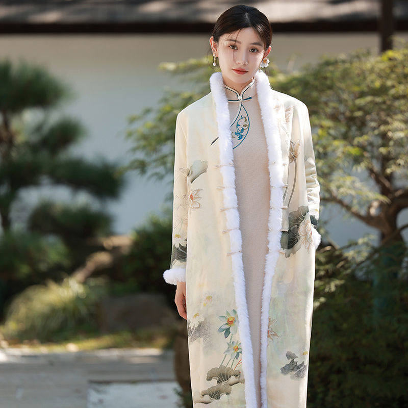 旗袍外套外搭长款风衣开衫冬季加厚加绒2021年旗袍