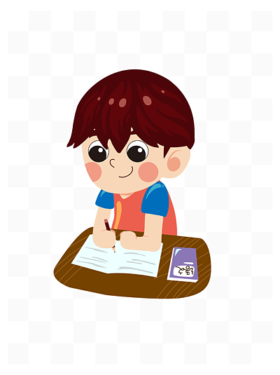 卡通手绘写作业的小男孩