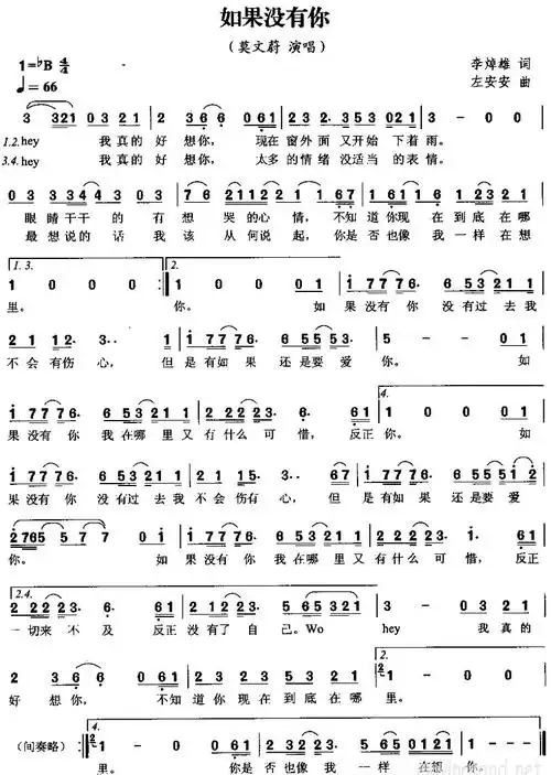 《如果没有你》_歌谱简谱_歌词简介_曲谱资料