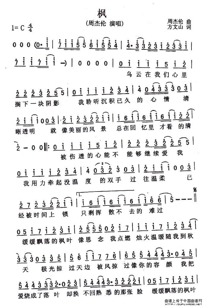 枫方文山词周杰伦曲枫方文山词 周杰伦曲简谱1
