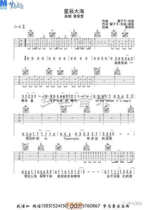 [抖音热歌]黄霄云 星辰大海 吉他谱 梦马音乐|酷玩吉他|扒谱制谱,品质
