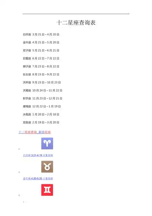 十二星座查询表