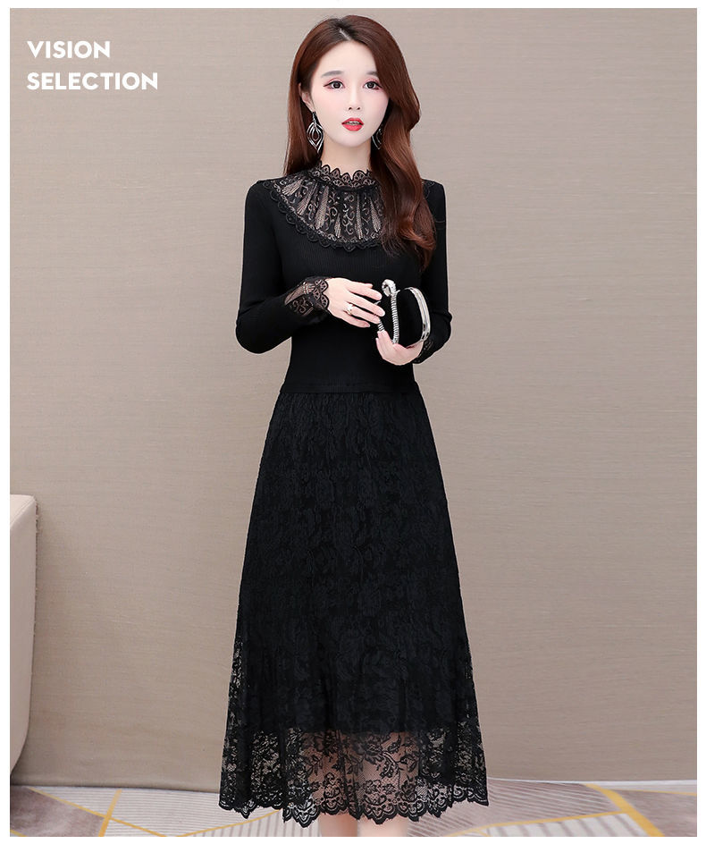 秋冬季新款连衣裙女高端蕾丝配连衣裙女2021秋季新款中长款收腰显瘦内