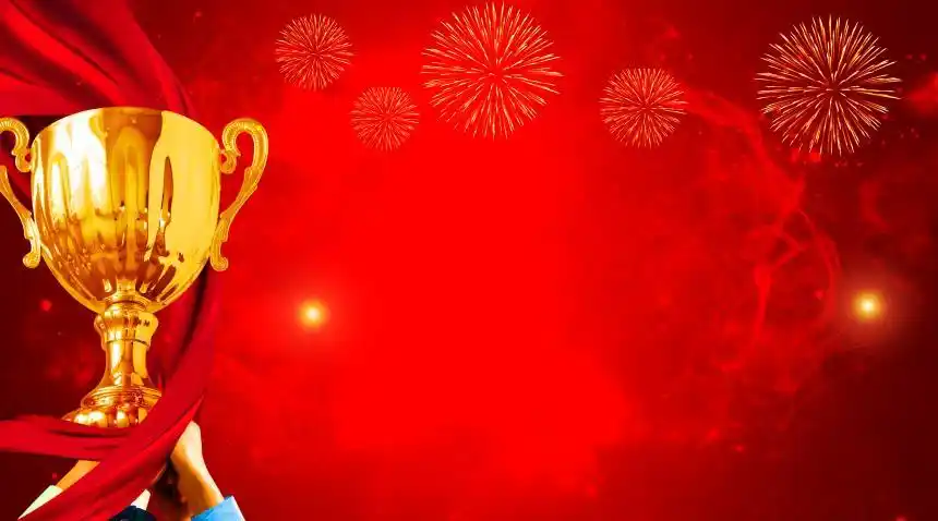 金色奖杯获奖光斑金粉企业年会烫金炫酷背景年会颁奖背景