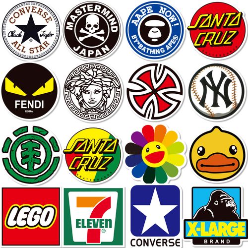 100张不重复潮牌logo装饰涂鸦贴纸电脑汽车摩托车滑板防水贴纸