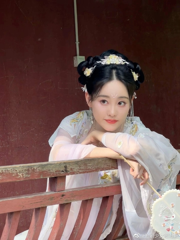 祝绪丹白色汉服仙气飘飘优雅写真_美得_花朵_一颦一笑