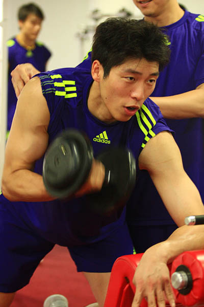 图文:中国男排进行体能训练 沈琼肌肉发达