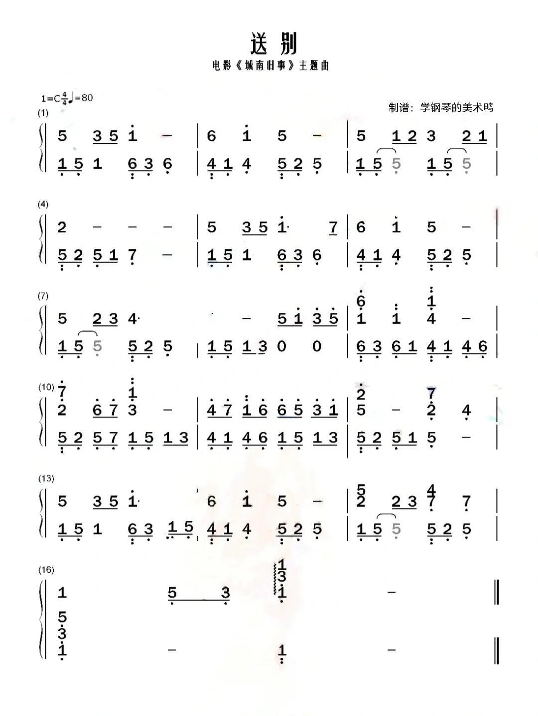 送别钢琴谱-c调-虫虫钢琴