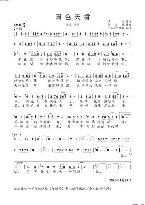 国色天香简谱(歌词)-思予演唱-一笑奈何晓斅曲谱1