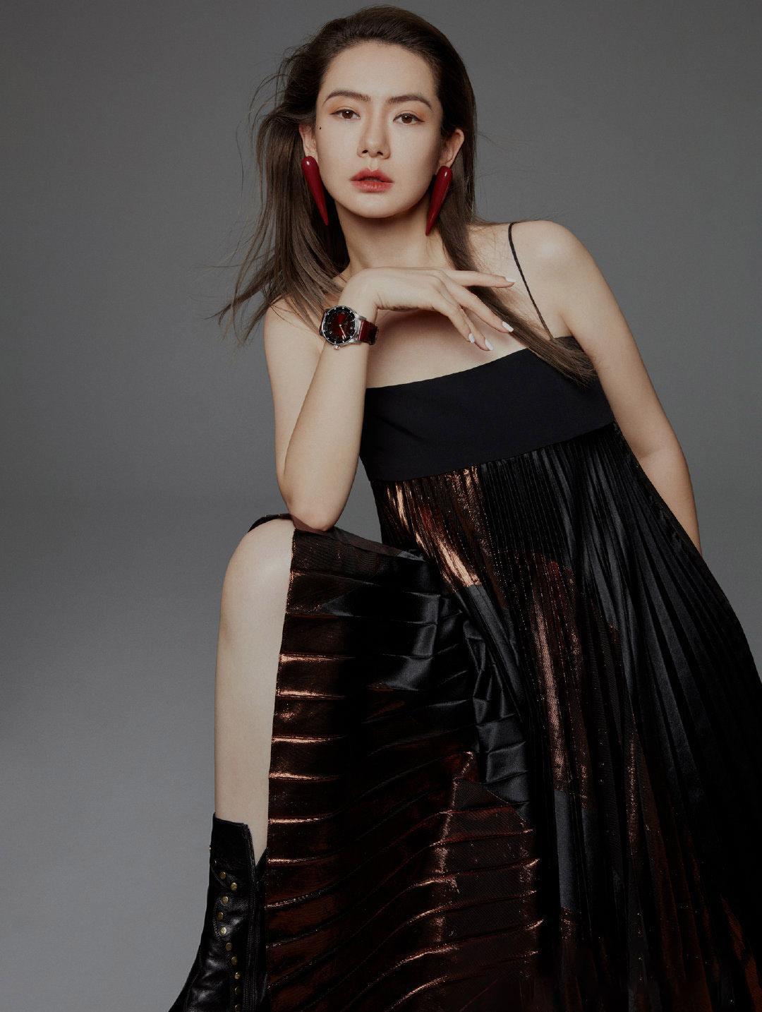 戚薇登《时尚芭莎》封面 黑色高开叉长裙迷人又暗黑