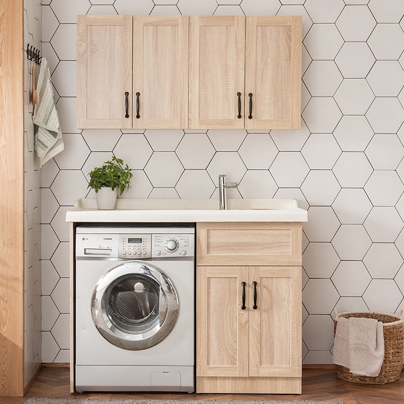 闪电客洗衣柜实木洗衣机柜阳台柜洗衣台卫浴柜洗衣池洗衣盆柜浴室柜