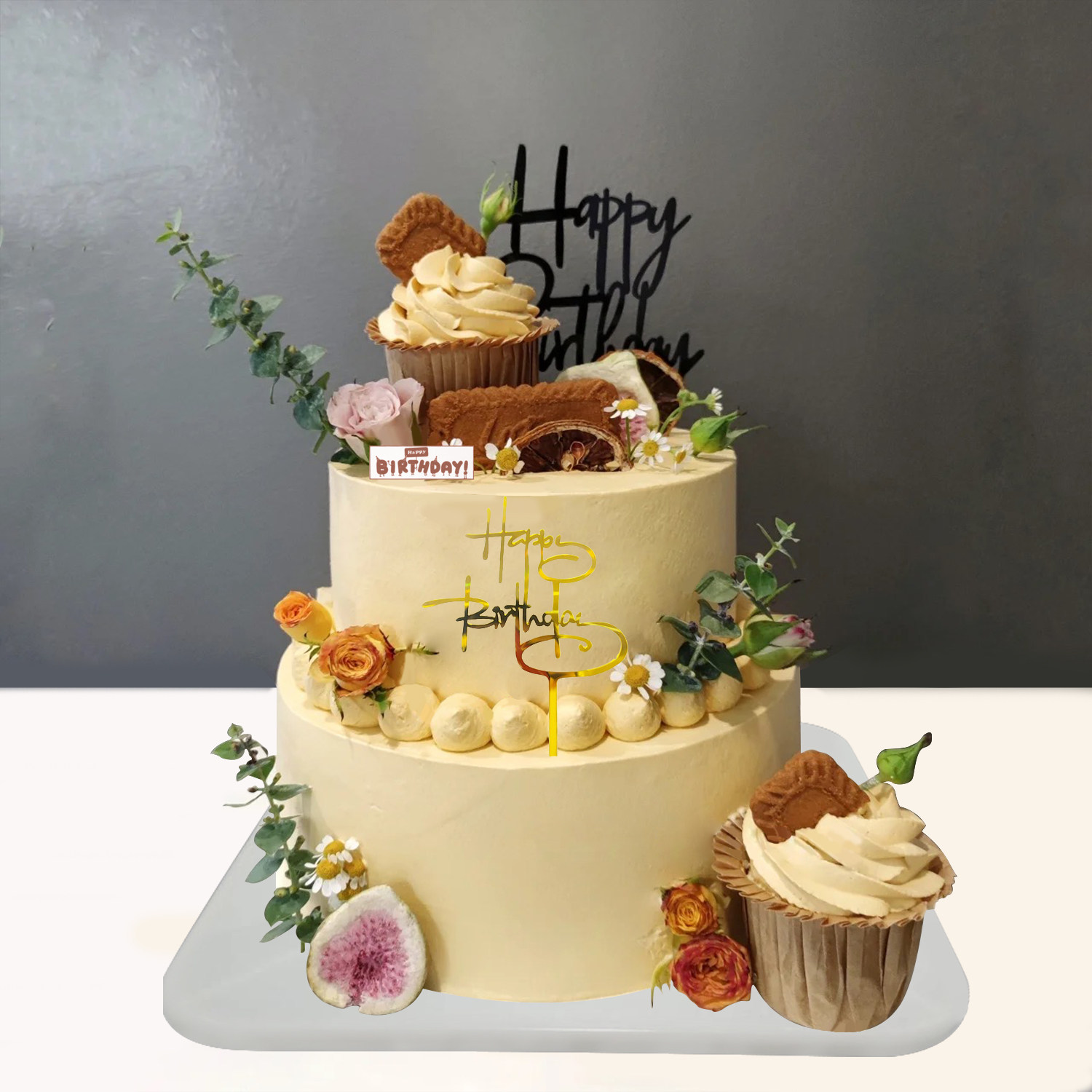冠堂居多层生日蛋糕模型仿真2021新款网红三层森系鲜花婚礼橱窗样品