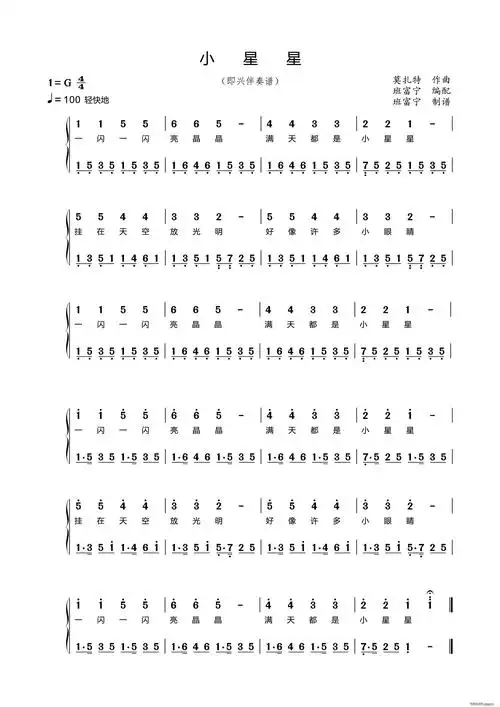 小星星即兴伴奏简谱