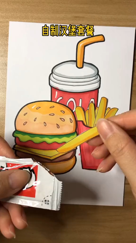 汉堡套餐小屋|步骤图.适合7-8岁 创意儿童画 #创意美术 - 抖音