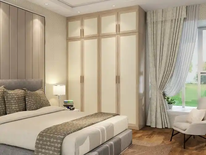 全屋定制卧室平开门衣柜家具整体轻奢衣帽间柜子设计7字平开门