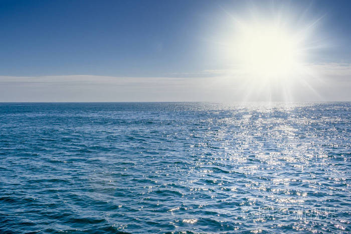 蓝色的大海与它反射的阳光