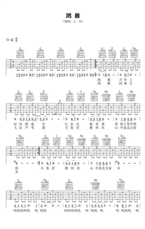 《云杰《鸿雁》》吉他谱