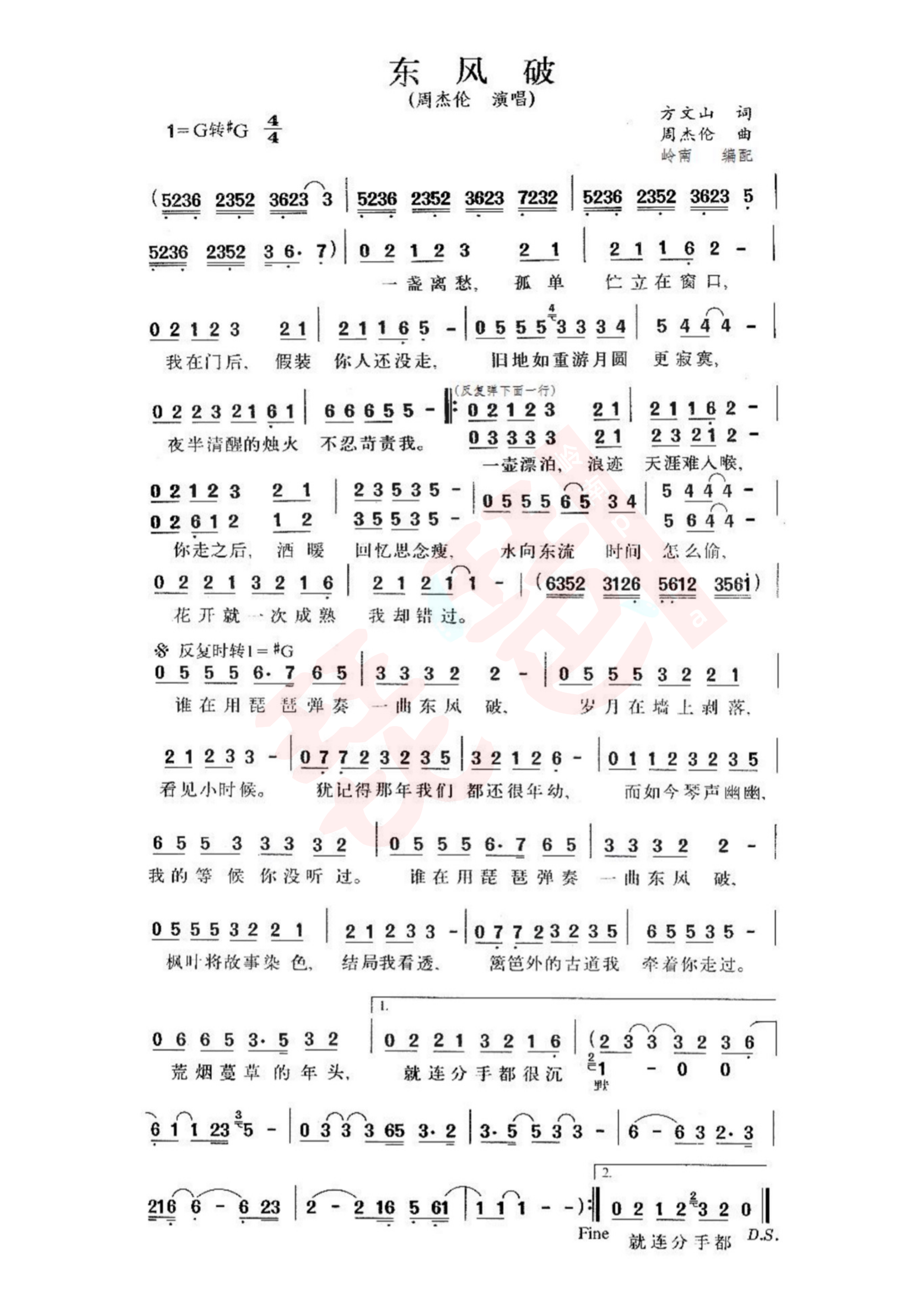 东风破(简谱/乐谱)—周杰伦