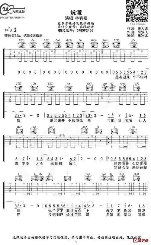 说谎吉他谱 g调指法 林宥嘉 无限延音编配1