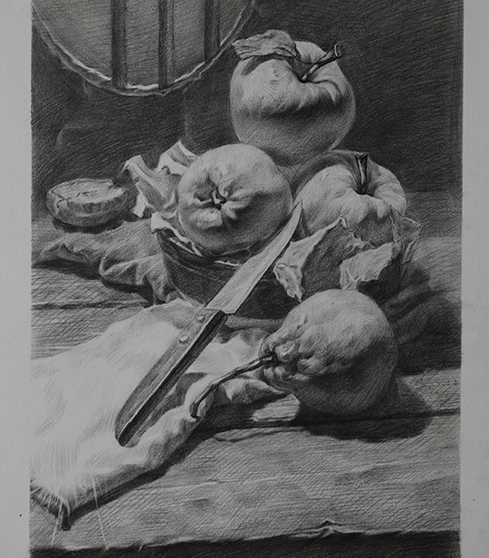 带水果刀的静物素描