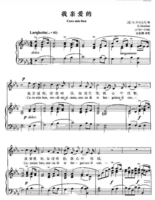 caro mio ben 《我亲爱的》 意大利语歌词范读,范唱,声乐范唱,美声