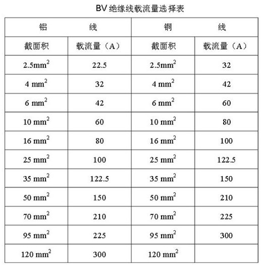 铜线平方与电流对照表